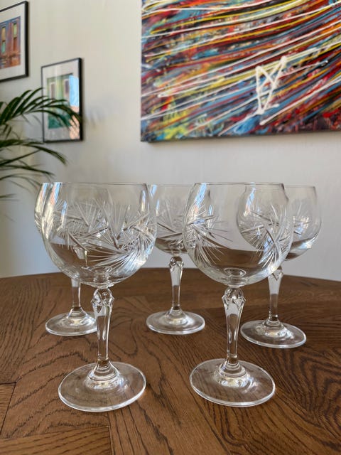 Hvidvinsglas og vandglas holdes mere neutrale, men vær ikke bange for at gå efter fine mønstre eller graveringer, som kan komplimentere det dominerende, farverige glas.
