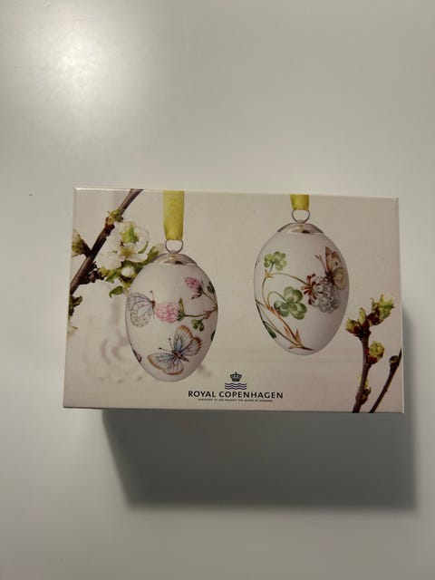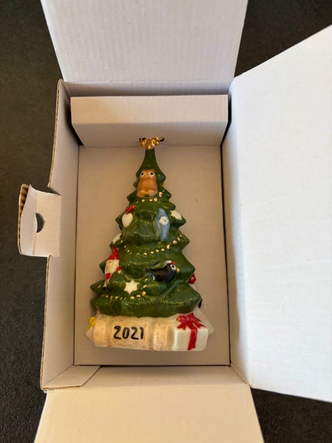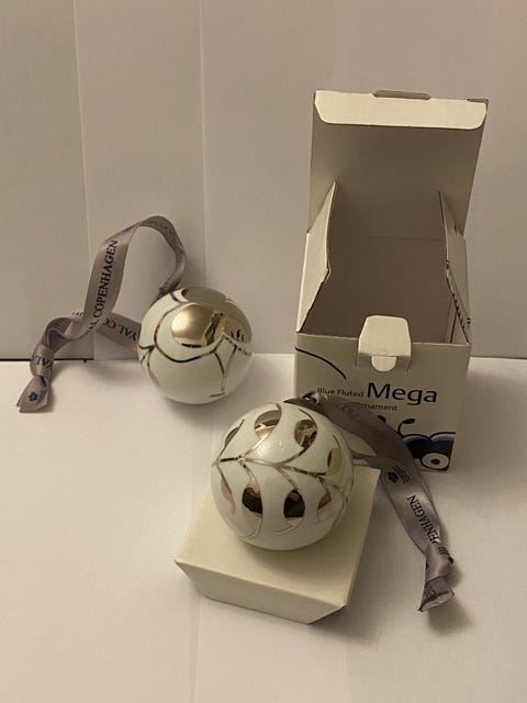 En anden ting, der fik lov at komme på træet, var pynt fra Royal Copenhagen – og her er julekuglerne stadig smukke at hænge på træet.