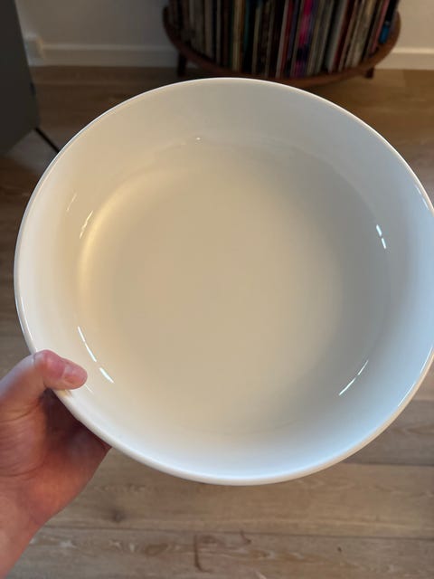 Jeg skulle være med i Go’morgen Danmark og skulle derfor til Sjælland. På vejen besluttede vi os for at køre forbi en lille genbrugsbutik, og der stod den sødeste, ældre dame, som jeg købte et fad af. Hun var virkelig rar og kærlig. Det var en rigtig god oplevelse.
