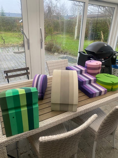 Er du til flere hæklerier, så er det også en god idé at se, hvad Julie P laver – her er der nemlig både rangler og bamse-blæksprutter! Og når det lille vidunder vil til at sidde op i barnevognen, så syr hun også barnevognshynder i de farver, du gerne vil have.