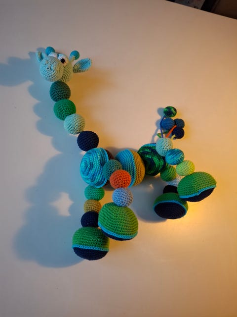 Og hey, vidste du godt at du på DBA kan finde en hel masse hæklerier, som dem, vi har hængt på vores uro? (Så der er altså hjælp at hente, hvis du ikke er super fix på fingrene - eller har en farmor til at klare det for dig.)