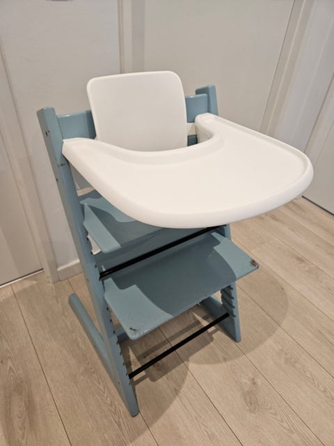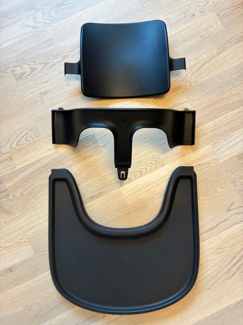 En nyere opfindelse, som mange forældre er lykkelige over, er bakken Play Tray, der kan sættes på stolen og fungerer som bord eller legeplade - og som er virkelig nem at gøre ren!
