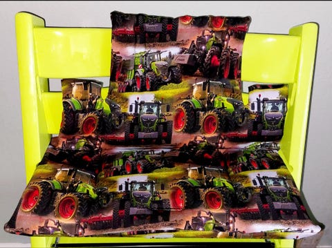 Der findes tilbehør som babyindsats, hynder og et sæt med rygstøtte og bøjle, der gør den brugbar fra barnet er nyfødt, og så findes den i mange farver.