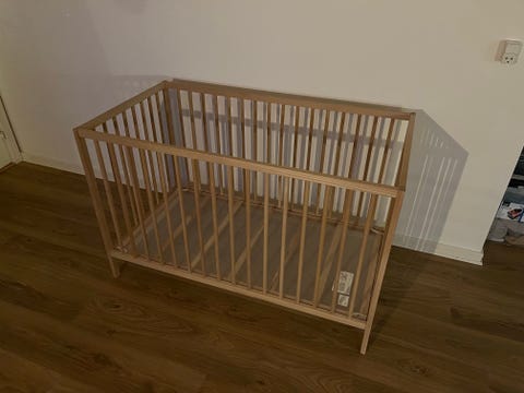 Du behøver ikke spendere flere tusinde kroner på en tremmeseng. Der findes faktisk flest tremmesenge i prislejet 300-499 kroner på DBA. Billigt, ikke? Vi købte tremmesengen til den nette sum af 500 kroner. Vi kørte sort/hvid-tema for at det kunne passe til Kenneth og Lenettes stil, og vi var så heldige at finde en tremmeseng, som allerede var blevet malet sort. Sortér annoncerne efter pris, for på den måde kan du finde den allerbilligste. Hvad der er sparret, er der tjent!