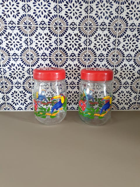 - Gamle glaskrukker med låg. Det gør ikke spor, hvis det er forskellige glas. Eksempelvis glas med patent låg eller sylteglas.
