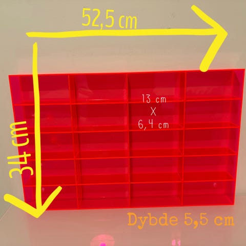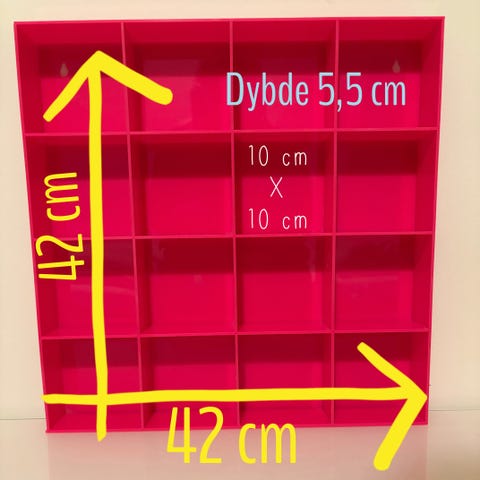 Små sættekasser i plexiglas gør, at væggene ikke synes overfyldte selvom der jo er en anseelig mængde legetøj derinde. Pelle går i hvert fald ikke ned på hverken biler, superhelte eller forhistoriske dyr!