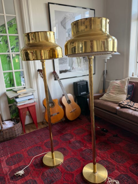 Jeg er så velsignet at jeg har hele 2 bumlinger i mit hjem! Bumling lampen er jo designet i Sverige og er fra mærket Atelje Lycktan. Loftslampe-versionen er jo for nylig blevet reproduceret igen, men ikke i de fine retro farver (endnu).