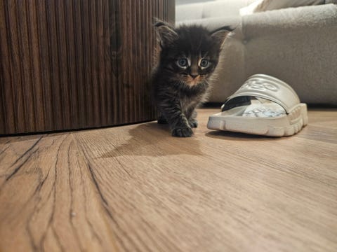 Lykken var stor da min mand endelig overgav sig og gav Mejse (og mig) lov til at få en lille kat IGEN. Under flytningen måtte vi desværre af med den tidligere kat. Vi ville ikke udsætte ham for den stress med to midlertidige bosteder, da han var kvart vildkat og bestemt ikke ville elske at være fanget indenfor. Så takket være DBA blev han formidlet videre til en familie i Ribe og hedder nu Hr. Peddersen (Tidligere Misser) - og her blivet han bliver knus-elsket af hans nye familie - og endda puttet med om natten (det gad han ikke hos os!)!