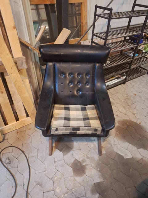 Jeg vil gerne finde et lille klædeskab eller en skænk, hvor hun kan have sit tøj, så vi ikke skal have det inde i vores skab. Det er hun stor nok til nu. Og derudover skal hun have en ny tavle, hun kan tegne på, for den gamle måtte til sidst lade livet efter megen leg og udnyttelse. Og så vil jeg gerne finde en gammel, hyggelig slidt bamse-lænestol, sådan én, hvor man sætter benene op og hygger. Dels fordi hun efterhånden er nået en alder, hvor hun kan sidde dér og læse/kigge bøger, dels fordi så er der noget derinde, som VI – de voksne – sidder ordentligt i, når vi skal læse godnathistorie. Lige nu foregår det på gulvet. Og det er hverken jeg eller min gravide mave ret begejstrede for.