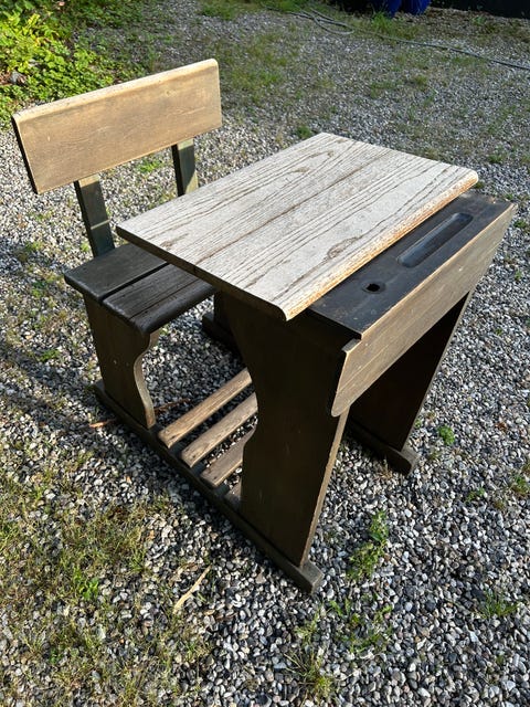 Den er da bare for charmerende! Der går nok liiiige nogle år før vi kan bruge den, men den er simpelthen så fin, så det er virkelig højt på ønskelisten! Jeg kunne lige forestille mig gode tegne stunder ved sådan en retro skolebænk.
