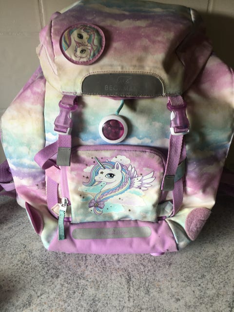 Beckmann stor og flot Skoletaske med enhjørning og regnslag(ny pris:799kr)