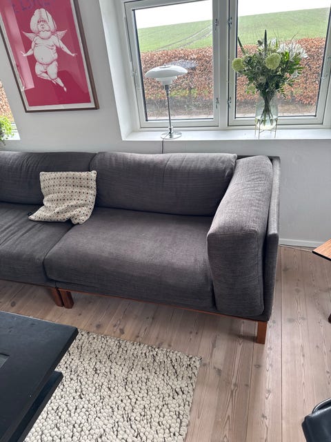 Designerne Peter Hiort-Lorentzen og Johannes Foersom står bag denne ikoniske sofa, som her er betrukket med sort og cremefarvet uld fra Kvadrat. Sofaens stel er udført i forkromet stål. Sofaen sælges for 7.000 kr.