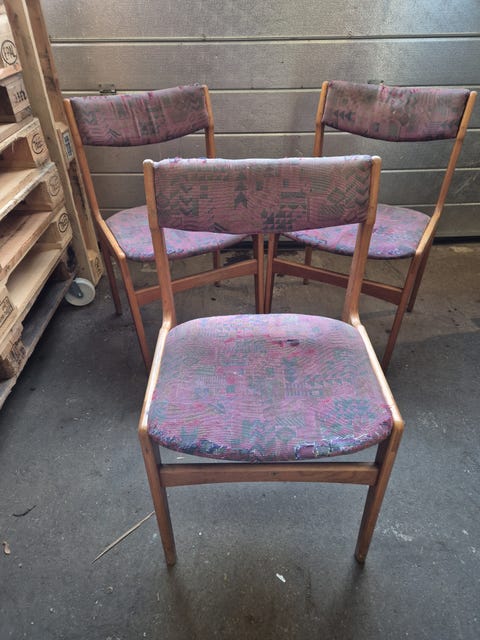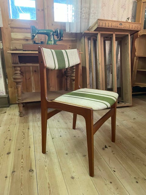 Den første stol blev fundet på mine forældres loft - den stol er stadig blandt stolene rundt om spisebordet, det er en Erik Buch model 320, og var den eneste af 6 der overlevede 90’ernes malings-mareridt (du ved dengang alt skulle males!!)