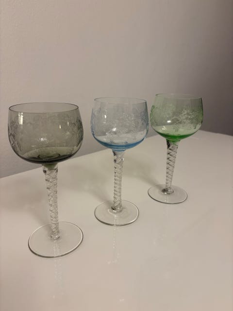 Vi har fundet en række smukke, farvede bøhmiske krystalglas frem – de er super dekorative og giver en skøn effekt til bordet! Du kan sagtens holde alle glas i samme farve, men det ser også skønt ud at lave et miks af nuancer.