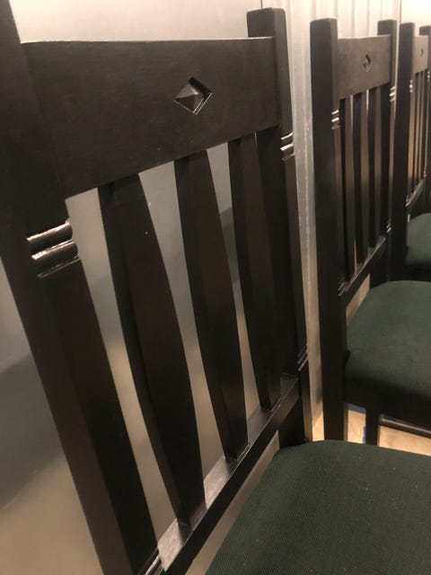 En dag blev der holdt en auktion til fordel for sårede veteraner, og her slog Gitte fra København til og bød på stolen. Og sådan blev den hendes.