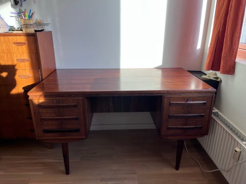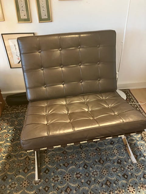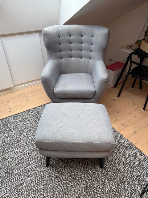 Gitte har nu sat stolen til salg på DBA, fordi den ikke længere passer ind i indretningen. Og det kan man ikke fortænke hende i, for stolen ser ganske speciel ud, og det kræver derfor de helt rigtige ting og den rigtige plads, hvis stolen skal passe bare nogenlunde ind.