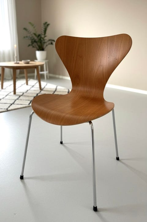 Hvis der findes ”one chair to rule them all,” er det Arne Jacobsens berømte ‘Syveren’. I dag er det helt almindeligt, at stole skæres i ét, men da spisestuestolen så dagens lys i 1955, var det banebrydene, at sæde og ryg var formet af samme stykke træ.