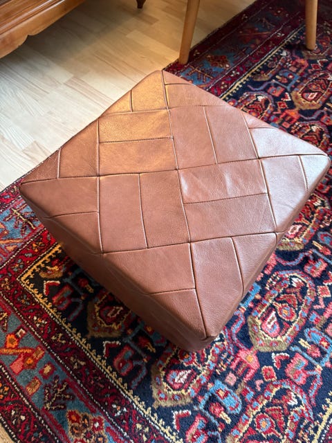 Her er et gør det-selv-projekt efter vores hjerte. Tag en ting og giv det en komplet ny funktion. Det må man sige er lykkedes her! Vi tænker, det kunne være fedt at lave en masse i løbet af foråret og bruge dem til sene forårsaftener og sommerfester. Indtil da gør denne gavn med et lammeskind over. Det giver en rustik detalje til stuen og fungerer som genial fodskammel.