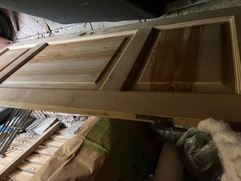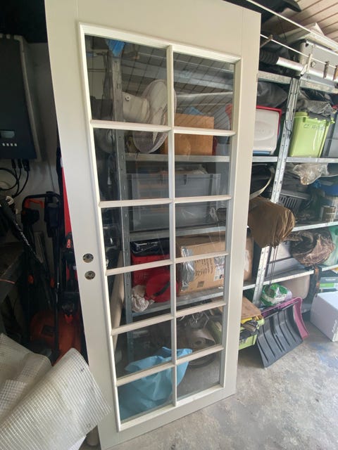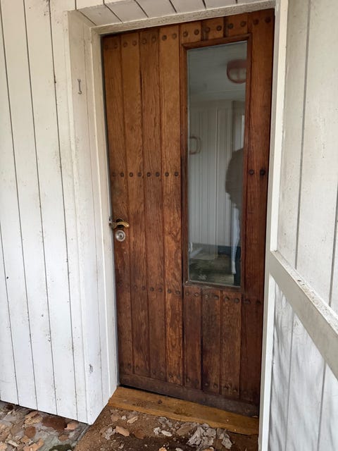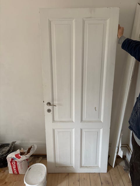1. Du skal starte med at finde en dør med vinduer i toppen og bunden, eller hvor der er en slags tyndere træplade i top og bund, dér hvor der også kunne være vindue.