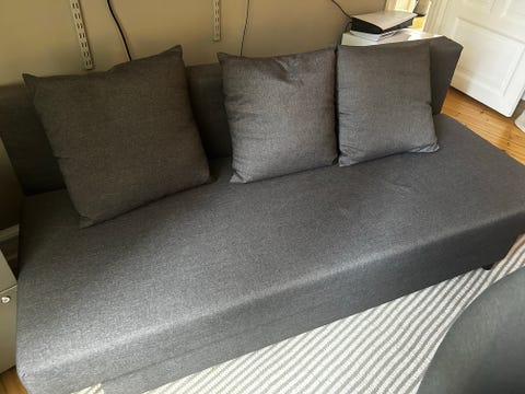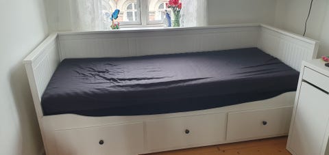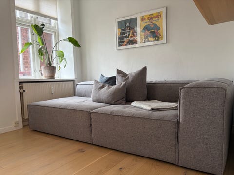 Opdatering: Nogle måneder efter, at daybeden blev lavet, solgte Lise og Michael den videre, og på billedet herunder kan du se, hvor daybeden står i dag.