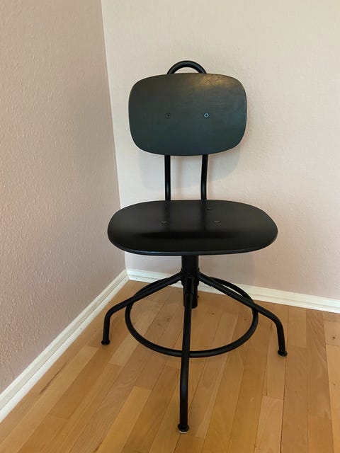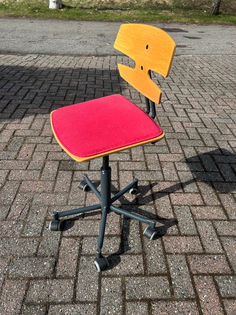 I videoen ovenfor viser jeg, hvordan jeg har mixet min ødelagte Arne Jacobsen-stol til en funktionel kontorstol ved at finde en gammel kontorstol i storskrald.