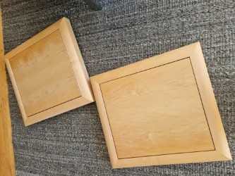 - Træet, som er lampens fod, skal tørres, så det ikke revner. Det skal saves til og slibes, mens kanterne skal fræses med en kantfræser. Derefter får træet enten olie eller voks, guider Jeppe og fortsætter: