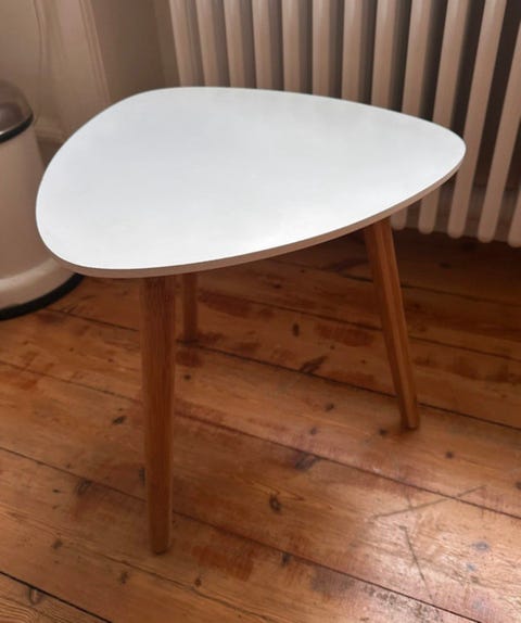 - Bland lidt fugemasse, og glat det ud. - Tør efter med en våd klud, så det meste fugemasse forsvinder. - Når fugen er tør, fjernes de sidste rester af fugemassen. - Nu kan du sætte benene på igen. - Færdigt arbejde! Nyd nu dit nye fine upcyclede bord.