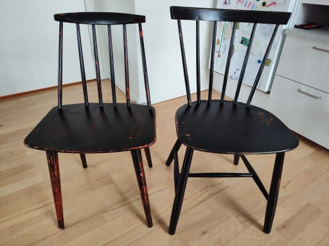 Jeg kan faktisk slet ikke forstå at 4 ens stole har kunnet overleve så mange år hjemme hos os!