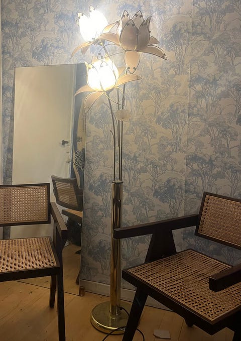 Ét af Maria Reginas yndlingsfund er en tulipanlampe, som hun faktisk fandt her på DBA. Desværre er hendes mand ikke fan af lampen, og derfor har hun solgt den videre til en ny ejer. Hvis du er på jagt efter en af slagsen, er der lige nu 28 til salg på DBA. De koster fra 500 kroner til 4.200 kroner.