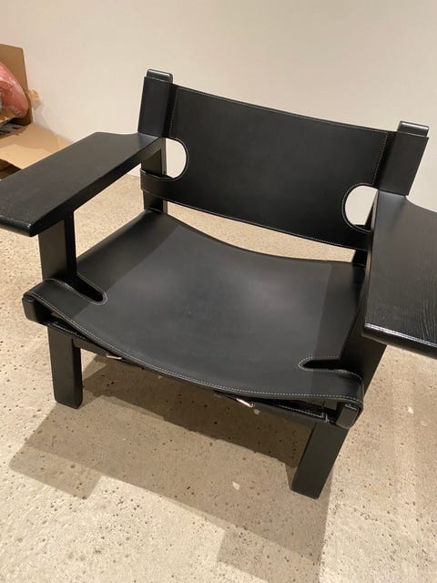 Det er ikke kun spisebordstole, jeg ikke kan få nok af, men også lænestole. Her er jeg også lidt kræsen, da jeg gerne vil have en historie bag, og dette er som regel kun på møbler med et navn. Det kan hurtigt blive en dyr hobby, hvis man ikke slår koldt vand i blodet og venter på de rigtig gode tilbud. Den næste stol på listen bliver - Den Spanske Stol af Børge Mogensen. Måske bliver dette en af de stole, jeg må drømme mig til - for det er en stol i høj kurs og høj pris.