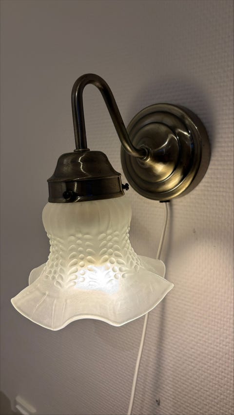 Hvis fatningen på lampen ikke virker, erstatter hun den med en anden, som hun også har købt brugt. I genbrugsbutikker er der nemlig ofte en teknikafdeling, hvor der ligger gamle fatninger og ledninger i kasser.