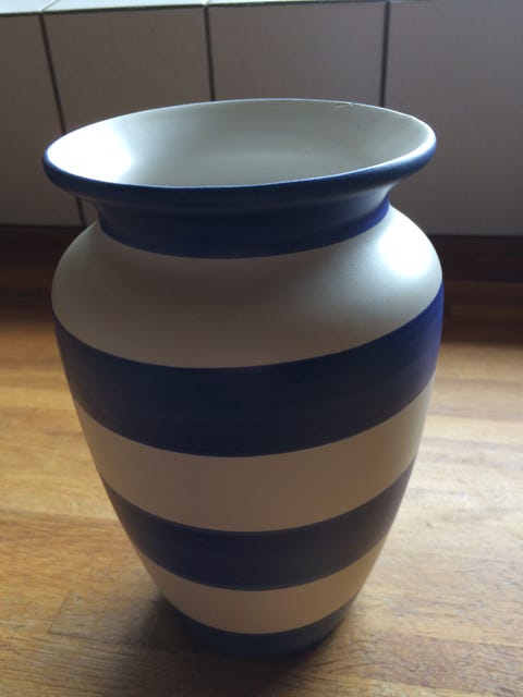 På reolsystemet står forskellige fund - bla. denne retro keramik lampefod, som vi selv har skiftet ledning på. Det kan du iøvrigt finde en NEM DIY på lige her på på guiden.