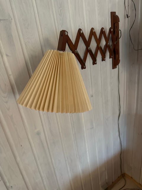 - Skærmen var jo så ganske fin og kun med enkelte patinerede brugsskader, uden betydning for mig. Så for den sølle pris af 200 kroner fik jeg både sakselampe OG min længe ønskede Le klint lampeskærm, fortsætter Mia.