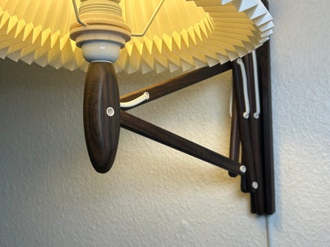 Denne type lampe er meget aktuel lige nu, både i træversion og i metaludgaver, da de passer rigtig godt ind i indretningsstilen, hvor retro og designklassikere er med til at give personlighed og hygge. For Mia var der også en anden rigtig god grund til, at det var lige den type lampe, hun gik på jagt efter.