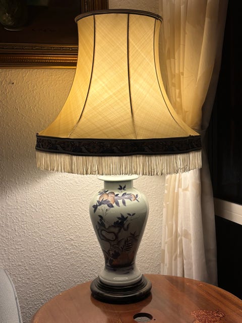 Lampeskærmen skulle dog smides ud, da den, efter sælgeres mening, var i virkelig dårlig stand.