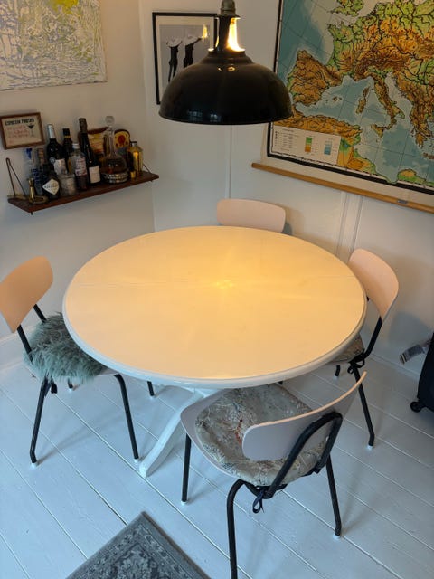 - Spisebordet var noget, vi havde ledt efter. Vi har lige totalrenoveret vores lejlighed, og jeg har hele tiden drømt om et rundt spisebord til køkkenet. Hvis pengene voksede på træerne, havde jeg hapset et af Eero Saarinen - jeg har en DBA-annonceagent slået til, der holder liv i drømmen, men selv brugt er det sandsynligvis for dyrt, siger Sofie Amalie