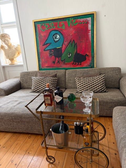 - Jeg ville være noget mere påpasselig med nogle af vores dyrere møbler, hvis vi havde købt dem fra ny til fuld pris. Men nu har de allerede lidt patina, og så gør en vandplet eller en ridse fra eller til ikke så meget. Det synes jeg også har sin charme.