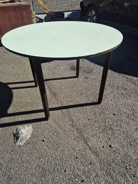 Jeg kigger jævnligt på DBA, og da det her kom til salg hos en sælger, der boede få hundrede meter fra os, slog vi til. Vi har nemlig ikke en bil, så det er dejlig praktisk for os at kunne søge efter ting i vores nærområde. Bordet var lidt slidt, til gengæld kostede det kun 200 kroner,