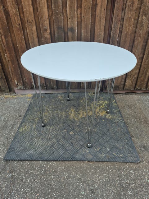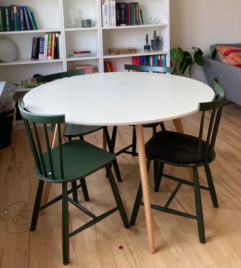 IKEA-bordet, der hedder ”Docksta”, var et rigtig godt alternativ, og fordi hun og kæresten tidligere havde gjort et fejlkøb, besluttede de sig for at prøve at finde et billigt brugt. Så kunne de samtidig prøve af, om størrelsen og stilen passede, uden at det var den store udskrivning.