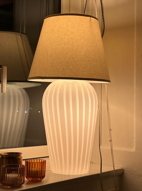 Kludestolen ryger som varmt brød, og jeg har endnu til gode at finde den rigtige. Derudover alle slags Murano-lamper og alt fra Karin Mobring. Jeg nåede heldigvis at få fingrene i en Murano-lampe, som hænger så fint i soveværelset.