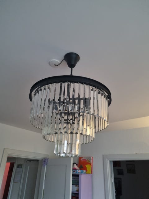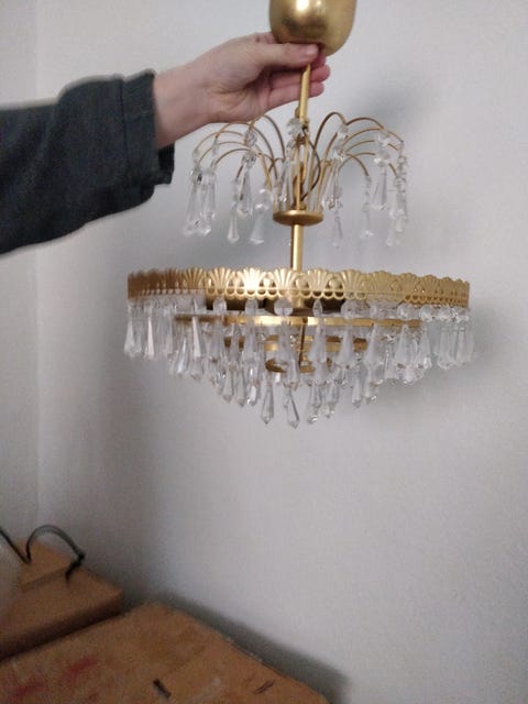 Damen var dog ved at løbe tør for penge, så hun havde sparret varmen i lejligheden væk, og lysekronen havde kun én pære i i stedet for de mulige 8. Brian og Kirsten købte dog heller ikke lysekronen billigt, så mon ikke damen har kunne skrue op for varmen siden.