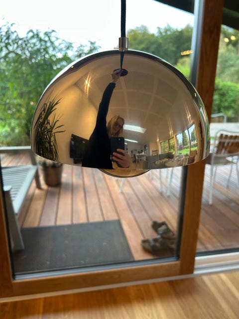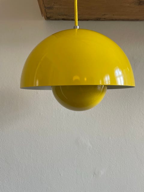 Parret fandt engang en Verner Panton VP4-bordlampe på DBA. Det var før, lampen blev sat i produktion igen. Sælgeren forlangte kun 800 kroner for den særlige lampe, og det var noget af et scoop. Så parret slog til og skyndte sig ud for at afhente deres nye belysning.