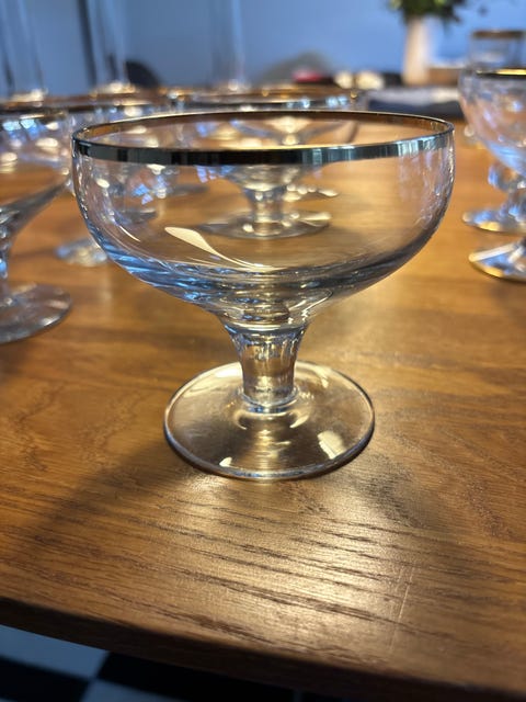 Her kan du se alle de champagneglas, der er lavet af krystal, og som samtidig er til salg på DBA.