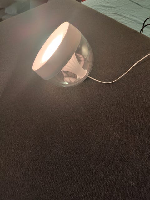 Samtidig kan lamperne give et ret fint stemningslys – og så er du garanteret en nostalgisk reaktion fra dine gæster. Lad lampen stå sammen med billeder og andet nips i reolen, så den ikke bliver rummets midtpunkt, men bliver en mere naturlig del af indretningen.