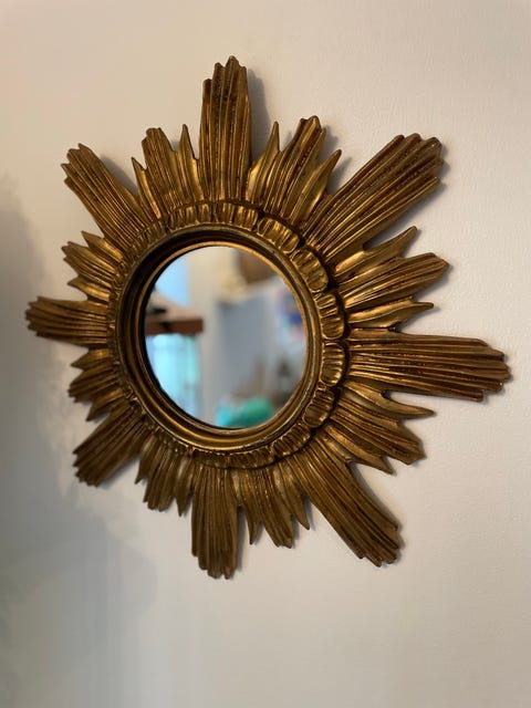 Er det stuen, du er i gang med, så er et væghængt spejl med en tynd træramme oplagt. Hæng det på en væg modsat et vindue, gerne ved siden af en væghængt reol i teak og lad en stor stueplante stå lidt ind foran det for at skabe ekstra dybde.