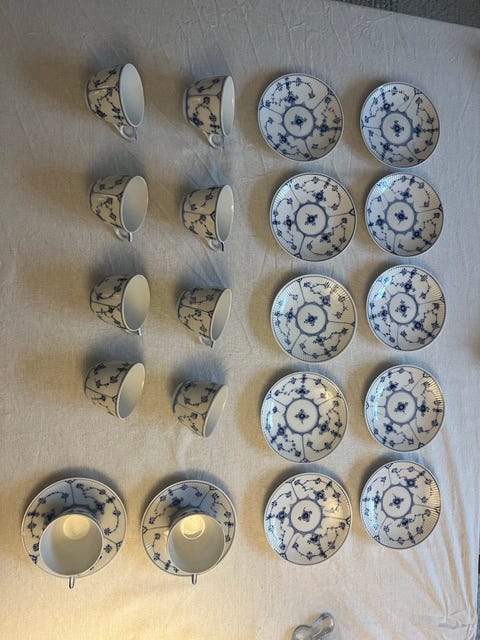 Det håndmalede musselmalede Riflede stel fra Royal Copenhagen var det aller første stel, som blev lanceret af denne Kongelige Hofleverandør. Stellets popularitet er ikke til at tage fejl af og nu godt 240 år senere er det stadigvæk en af de meste velkendte og eftertragtede stel på verdensplan - og også på DBA!