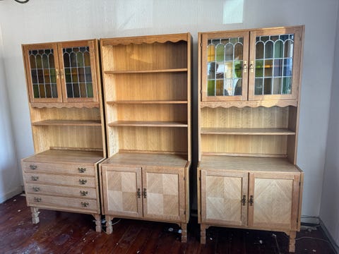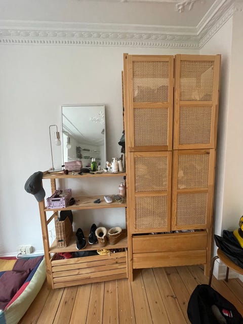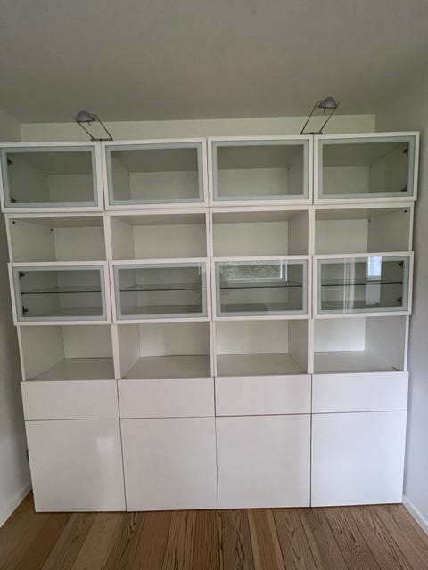 Væg til væg reolsystemer er en tendes der i stigende grad er på vej tilbage igen. Kære Louise J. kan igen være med på trenden i form af dette fine og lyse system, der for alvor kan sætte enhver pynte-tantes længsler i gang. Personligt er jeg selv på udkig efter et tilsvarende system med teakhylder og messing beslag - så min søgeagent er sat i gang på DBA under søgeordet teak reolsystem.