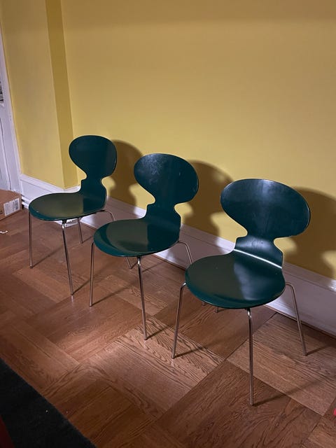 Vores stole er alle sammen en smule specielle og er måske ikke dem, der er nemmeste at finde på DBA. Men hey! Det er jo det gode ved det. Så er det lidt mere unikt. Og det halve ved hele det her stoleshow, er jo også selve jagten efter den perfekte stol. Det synes jeg i hvertfald!