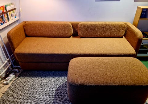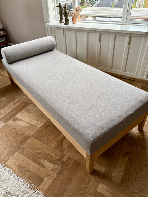 Opdatering: Nogle måneder efter, at daybeden blev lavet, solgte Lise og Michael den videre, og på billedet herunder kan du se, hvor daybeden står i dag.
