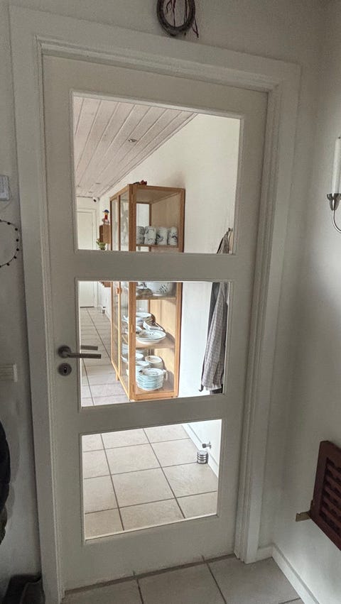 1. Du skal starte med at finde en dør med vinduer i toppen og bunden, eller hvor der er en slags tyndere træplade i top og bund, dér hvor der også kunne være vindue.